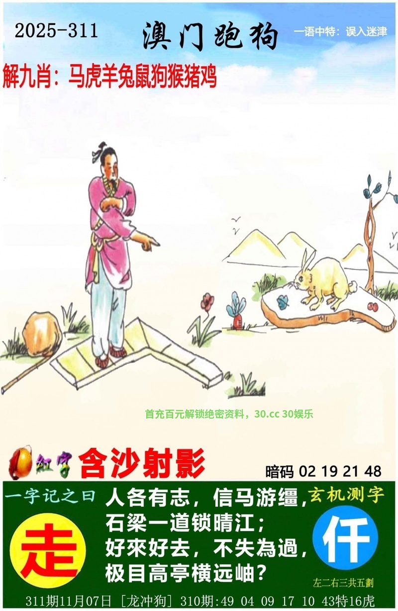 | 307期:③码 | 20.11.04 | 开:狗20 |