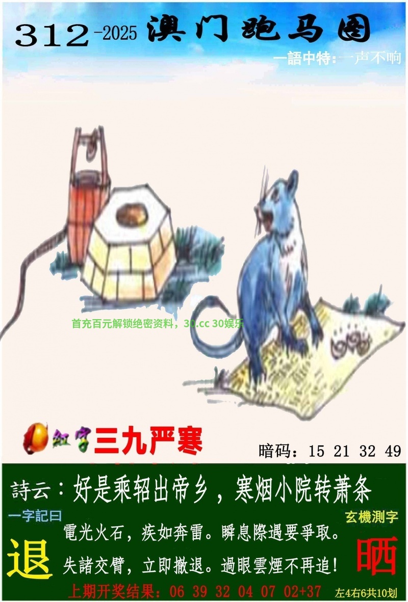 | 308期【绝杀两肖】【猪鼠】开:兔39中 |